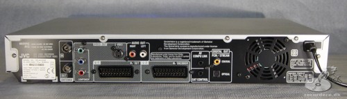 Bagsiden rummer antenne ind/gennem gang, Component Video udgang, S-Video og lyd udgang, 2 SCART stik, stik til satellitmodtager styring, digital out og blæseren. Jeg vænner mig aldrig til en blæsers snurren! Ikke fordi recorderen støjer mere end andre recordere, men det generer mig, hvis jeg fx sidder og ser en film.