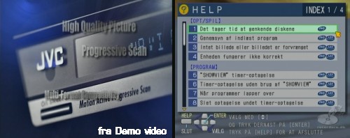 JVC har lagt en hjælpefunktion i recorderen, og den kan altid kaldes frem og give en hurtig hjælp uden at manualen skal findes frem, og det er et skridt i den rigtige retning.
