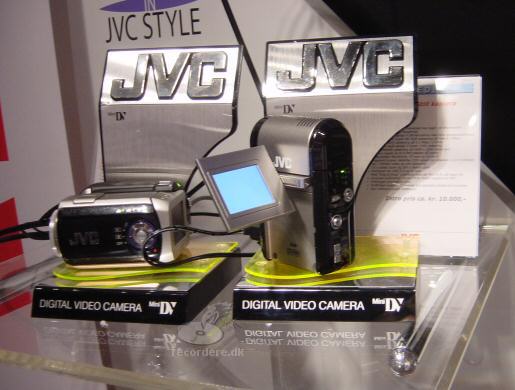 De digitale videokameraer bliver også recordere nu. JVC fremviste denne lækre lille sag, som er det første lille DV kamera med harddisk istedet for bånd (kan også bruge memory card). Der er plads til en times optagelse i DV kvalitet.