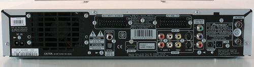 På bagsiden findes 2 SCART tilslutninger med hhv. RGB ud og ind, component video ud (Y, PB, PR), HDMI ud, s-video/video/audio ind og ud, digital audio ud (både coax og optisk), antenne ind/ud plus G-link (tilslutning af den medfølgende infrarøde sender) samt Pioneer control interface (hvis apparatet skal ?snakke? med andre Pioneer enheder).