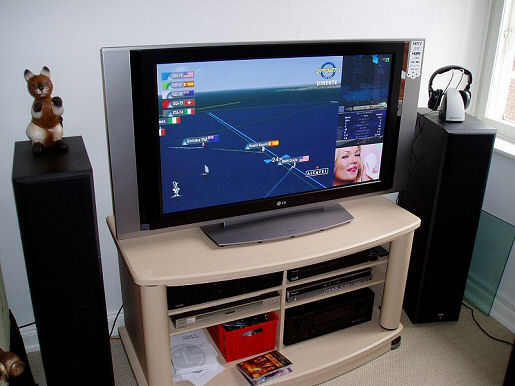 Eksempel på PAP, med 2 store billeder side om side. Man hører lyden fra det største billede. På fjernbetjeningen kan knappen “Swap” bruges til at bytte de to billeder – hvis man lige skal høre hvad der sker på den anden kanal.