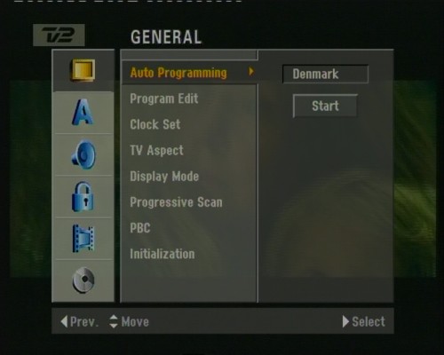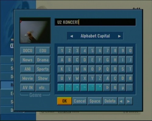 – en lidt simpel og kedelig menu, men der er plads til 6 optagelser pr skærmbillede.