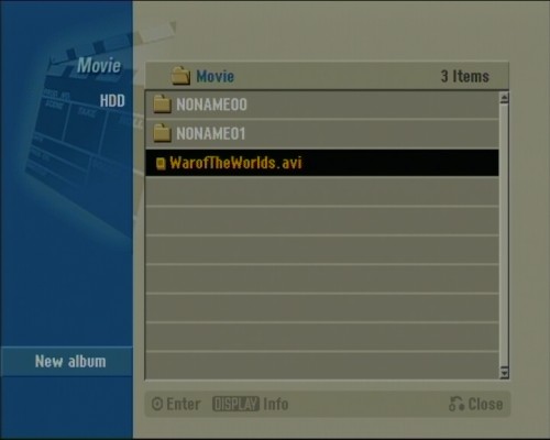 Og endelig afspillede Hitachi DV-DS251E alt hvad jeg gav den af DivX film. Man kan gemme dem på harddisken i mapper man selv navngiver.