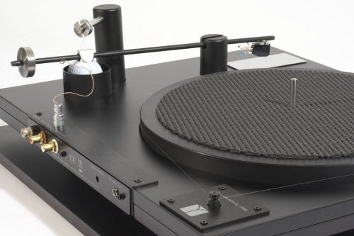 Pladetallerkenen er i acryl og i overstørrelse, det giver både stor masse, for bedre inerti og dermed lavere wow og flutter, men giver også fremragende akustiske egenskaber, grundet acryls ligheder med vinylen.