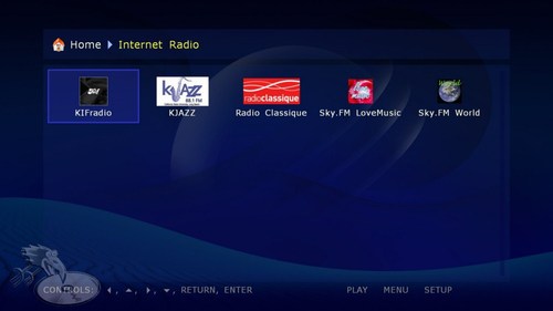DUNE HD Max har indbygget afspiller af Internet radio stationer, og det fungerer ved at man på afspilleren opretter en folder til radio stationen, og så kan lægge ikoner og link til den. Det er besværligt, men det virker.