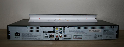 Bagpanelet er monteret med et antal tilslutningsmuligheder (HDMI 1.4 udgang, 2 analoge RCA udgange, komponent udgang, en digital lydudgang (optisk), en LAN indgang og endelig en S-video). Jeg er usikker på om afspilleren er monteret med en blæser, og jeg har da heller ikke hørt en sådan i drift under min brug af afspilleren.