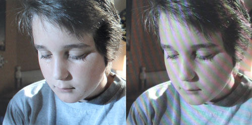 Et stillframe fra videoen herunder viser også ret tydeligt, hvordan detaljegraden på den ny iPad er langt højere end tidligere. Prøv at kigge på drengens hår, der stikker ud til venstre for hans hoved. De står knaldtydeligt på iPad 3, men noget mere utydeligt og pixeleret på forgængeren.