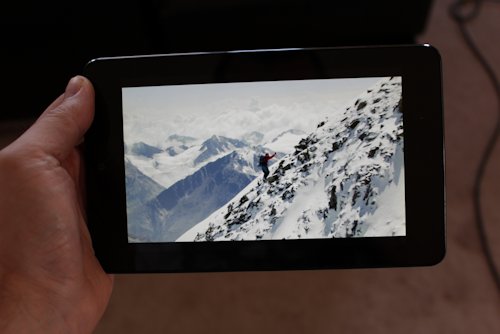 Der er da heller ingen svinkeærinder, når man afvikler film i HD på den lille skærm. Den har ingen problemer med at skalere ned fra 1080p, alt står skarpt og fint. Vi så en lille smule og meget minimal hakken, da vi streamede 1080p-video fra nettet, men det kan lige så vel være netforbindelsen eller serveren i den anden ende.
