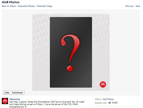 “Spiller” er det rigtige ord at bruge her, for Motorola har nemlig sat gang i en sjov leg på deres Facebook-side, hvor de prøver at få deres fans til at gætte, hvilken telefon, der er på vej fra dem. Alt, de har afsløret er, at den har 4G LTE. Det mest sandsynlige er dog, at vi kommer til at se en 4G-version af deres ultratynde RAZR-smartphone, som firmaet har haft lidt af et comeback med i USA og som også er tilgængelig i Danmark.