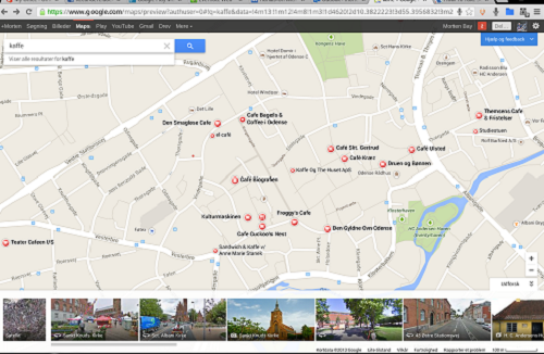 Recordere har dog fået lov til at kigge indenfor på Maps I browserformen, som den ser ud nu. Og det er spændende. Man kan komme helt indenfor I mange af de steder, Google Maps kan anbefale én at prøve. Det sker ikke bare via brugerbilleder. I stedet sammensætter den nye Google Maps brugernes billeder til ét stort billede af det sted, der nu bliver anbefalet, sådan at man kan komme 360 grader rundt på f.eks. en bar eller en restaurant, allerede inden man besøger stedet.