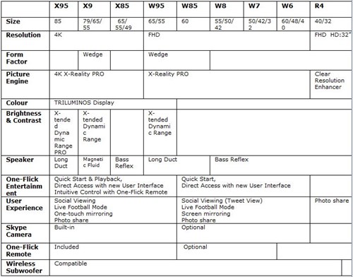 Ny 4K Ultra HD og Full HD LED BRAVIA-serie fra Sony i nyt Wedge-design