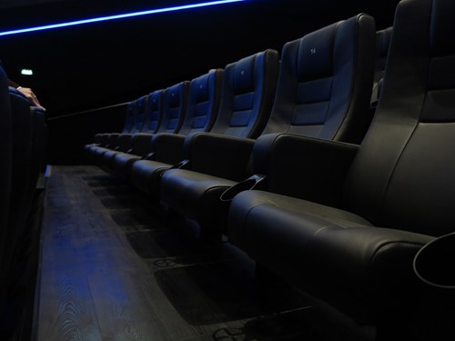 I den nye sal er der 550 sæder, der er ekstra brede og med ekstra benplads på alle rækker. Her er der plads til at alle kan strække ben og nyde filmen fra de behagelige sæder.