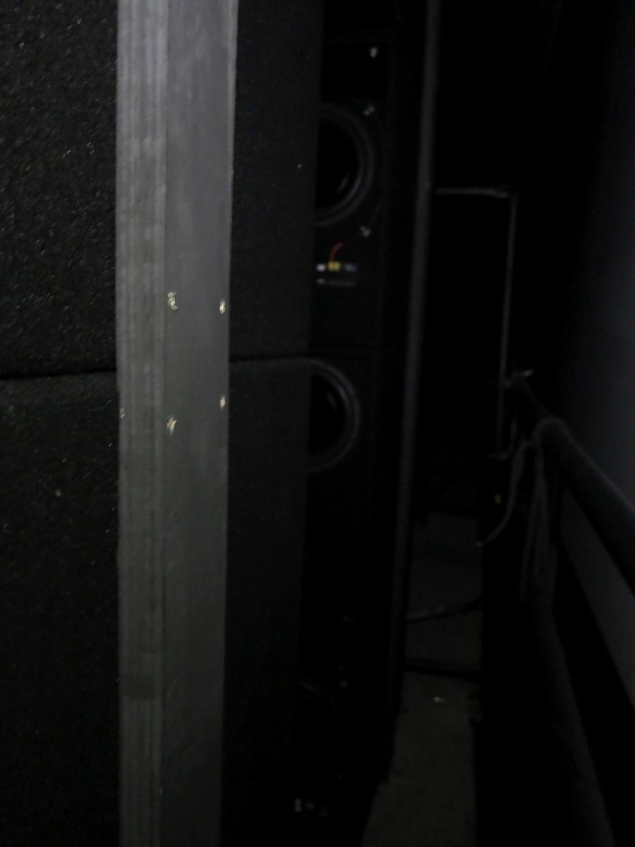 Bag lærredet stod de to gigantiske subwoofere (hver vel 3 meter høje) der efter behov kunne få salen til at skælve.