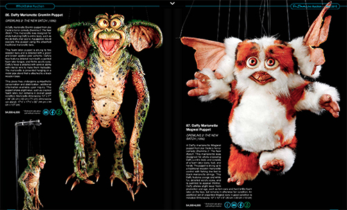 Blandt nogle af de mere legendariske ting, der er på auktion, finder man en række makeupeffekter og masker fra Michael Jacksons Thriller-video, samt dukker og dele i alle størrelser og former fra Gremlins-filmene.