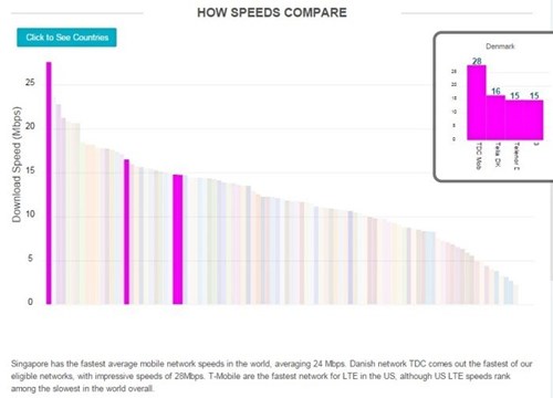 Det er den globale analysevirksomhed OpenSignal, der står bag testen. Med udgangspunkt i målinger fra mere end 330.000 brugere fordelt over samtlige kontinenter har OpenSignals hovedkvarter i London analyseret, hvilke internethastigheder der er registreret i alle verdens 4G-mobilnetværk.