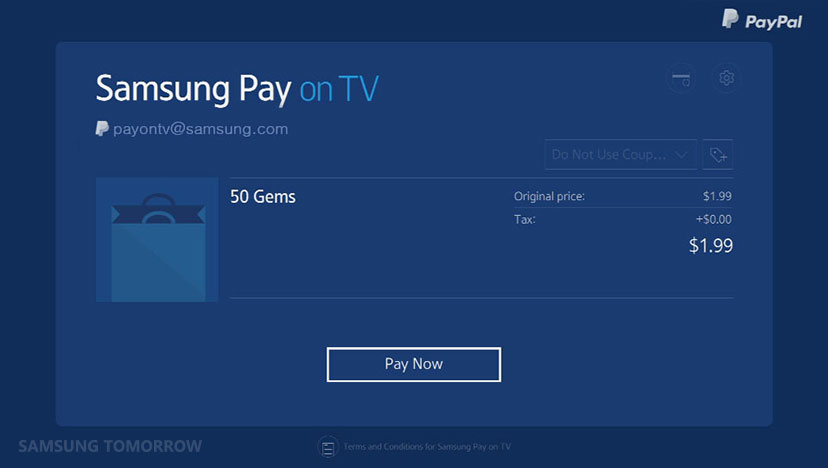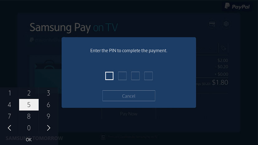 ’Samsung Pay on TV’, som tjenesten hedder, giver mulighed for at betale for apps, spil og formentlig også musik, tv-serier og film med betalingstjesten, der understøtter kreditkort og PayPal.