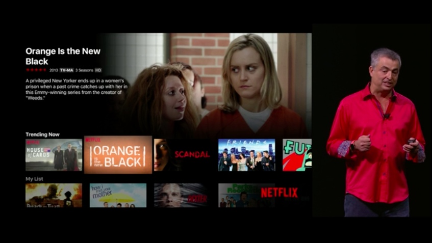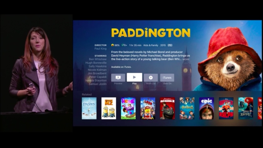 Siri er dybt integreret i den ny Apple TV, hvilket betyder, at man kan søge efter indhold, vælge og betale for det, alt sammen ved stemmens brug. Sortering er nemt med Siris nye kontekst-forståelse, så man bare behøver sige ”Kun James Bond-filmene”, når man kigger gennem actionfilm.