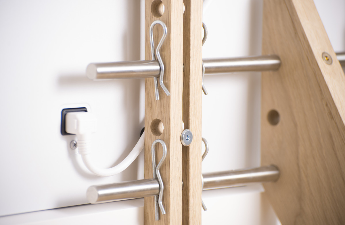 Langs bageste ben er der indlagt en kabelskjuler, og der kan tilkøbes et kit til konsoller, der kan gemme dine forskellige gadgets som Apple tv, Playstation, eller Yousee box bag tv-skærmen.
