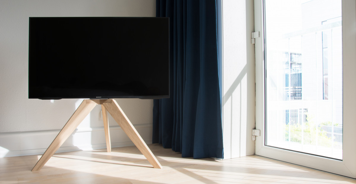 Opstalt OP1 er trebenet, udført i sæbebehandlet egetræ og passer til de fleste gængse tv-modeller *) på markedet (med VESA montering fra 20-40 cm).