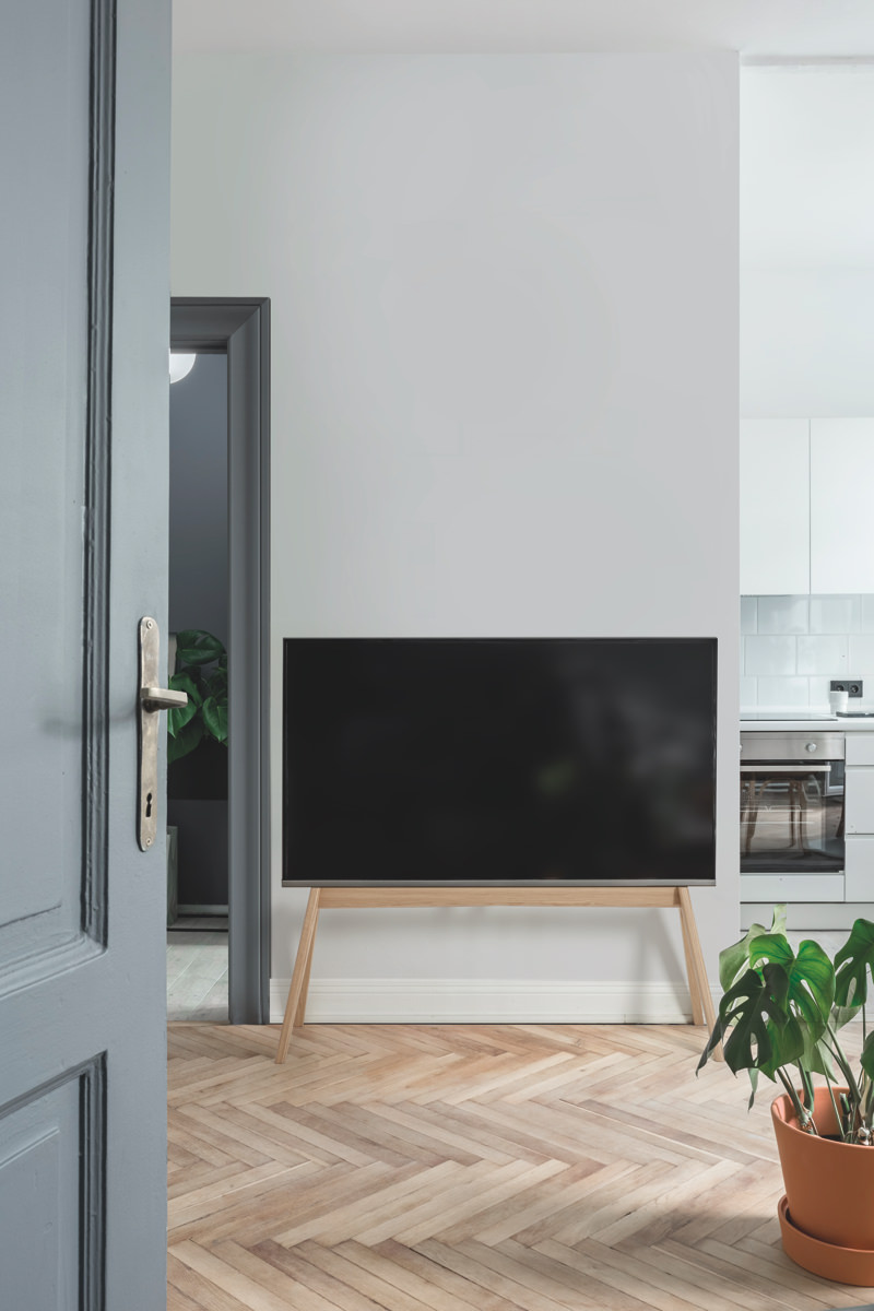 Den nye tv-stander har – til forskel fra sin lillebror OP1 – et smallere design der gør det muligt at sætte det tæt mod væggen, samt større tv, og med muligheden for at montere soundbars for ekstra god lyd og oplevelse.