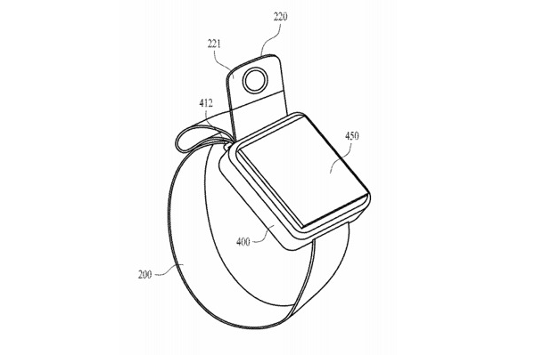Med Apples løsning kan man i stedet justere kameraets placering ved at justere en del af remmen, der stikker op bag urkassen. På den måde kan man også kigge på urets skærm for at tjekke kompositionen, inden man trykker på udløseren.