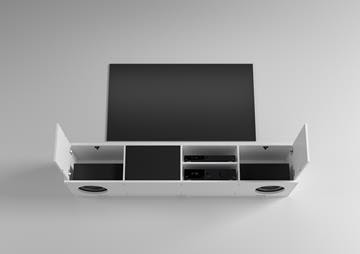 I Lyngdorf / clic systemet er Lyngdorf’s BW-2 sub woofere integreget i løsningen og spiller ud gennem bunden af møblet.