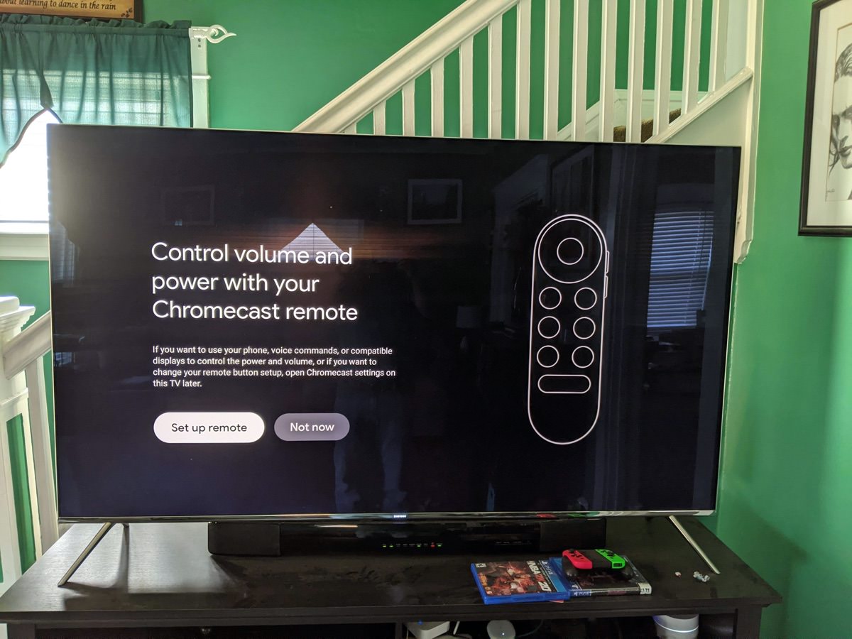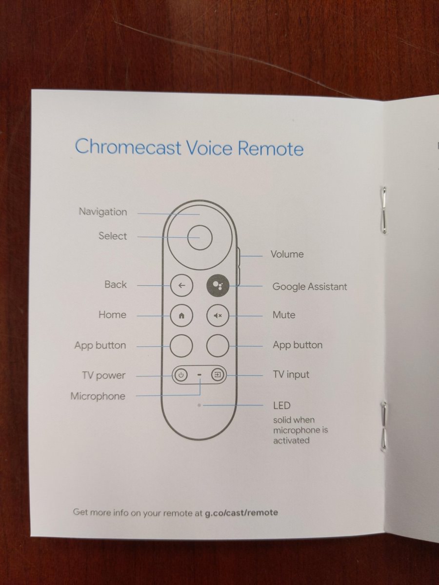 Som noget nyt for Chromecast følger der en fjernbetjening med, og den kan både styre via Bluetooth og via stemmen. Der er mikrofon indbygget så Google Assistant kan finde indhold frem.