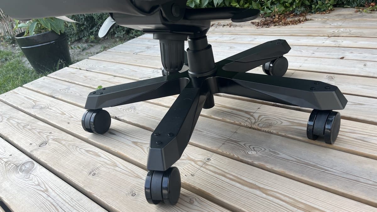 DXRacer har som nævnt ikke sparet på materialerne. Stålrammen føles meget stabil, gasliften er af klasse 4 med en maksimal belastning på omkring 150 kg, og hjulene ruller glat selv på tæpper.