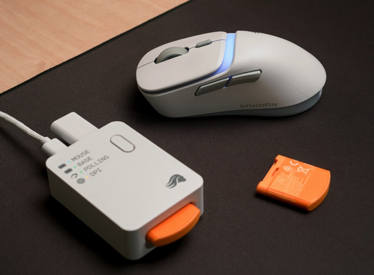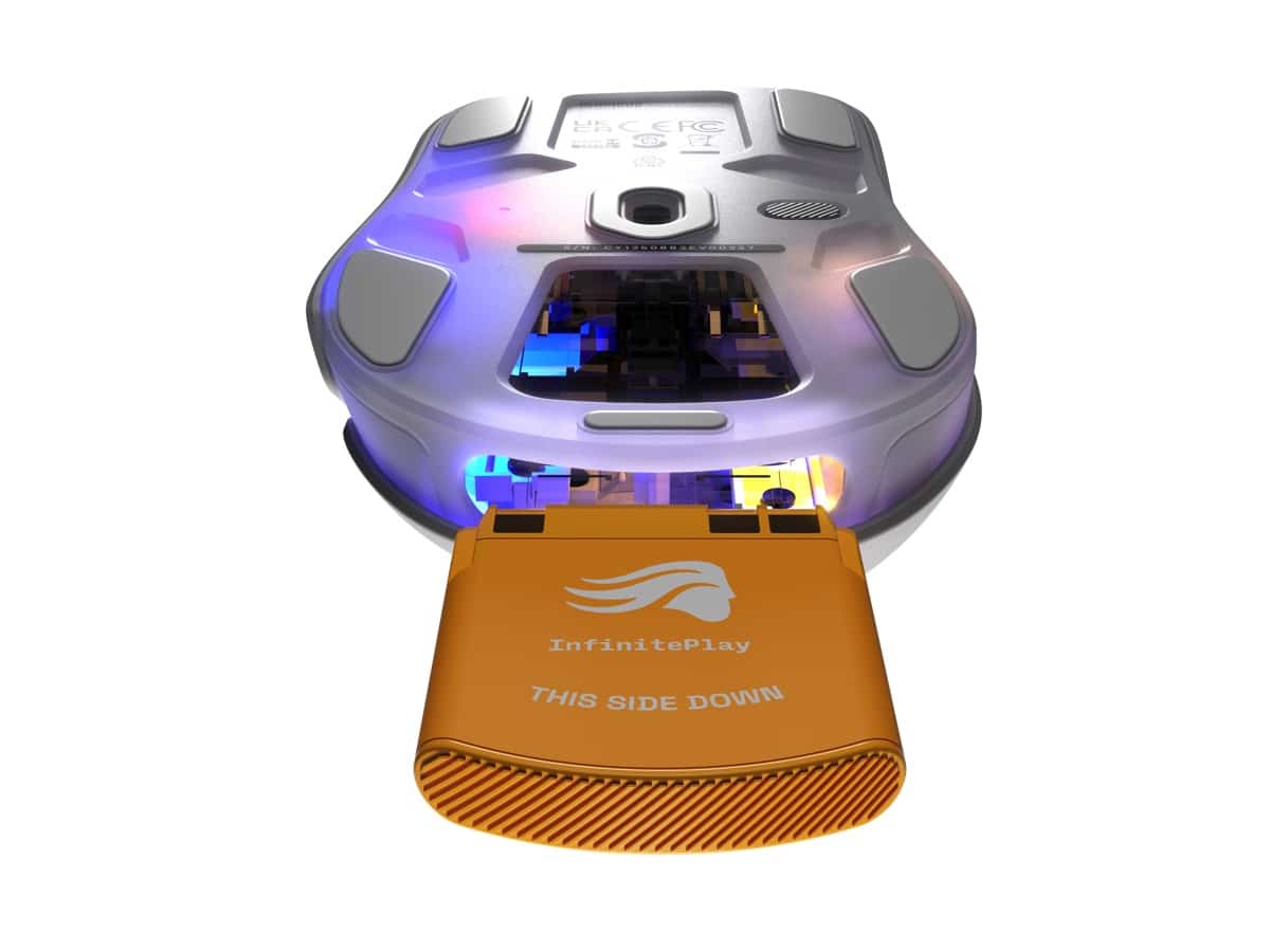 InfinitePlay-systemet består af to batterier. Mens det ene oplades i en separat hub, kan det andet bruges i musen. Batteriet udskiftes på få sekunder. Et indbygget backupbatteri – kaldet Guardian Battery – sikrer, at musen fortsætter med at fungere under batteriskiftet. Kapaciteten er over 10 timers brug.