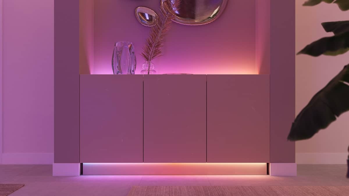 Philips Hue introducerer en ny serie indendørs og udendørs LED-strips. Flagproduktet Hue OmniGlow er virksomhedens første punktfri lysbånd baseret på CSP-teknologi, der giver en jævn lyseffekt. Serien kan tilpasses i længde til både dekorative og funktionelle formål.