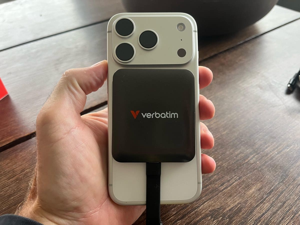 Til det formål er Verbatim Snapback SSD´en ret lækker synes jeg. Den vejer kun 34 gram ifølge brevvægten derhjemme og er magsafe kompatibel, så den “snapper” fast på bagsiden af telefonen. Den kommer i 3 versioner: 512GB, 1TB, eller 2TB og er også kompatibel med nyere versioner af Android og Windows.