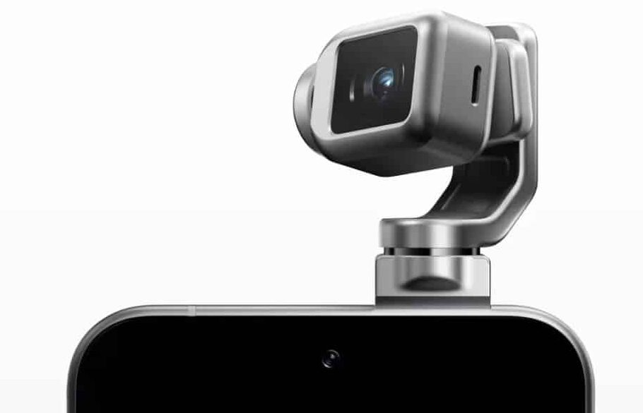 Ifølge teaseren består telefonen af en almindelig smartphonekrop, men med et robust kameramodul på bagsiden. Når armens motor aktiveres, folder den sig ud med lyd (ja — telefonen “klukker”).