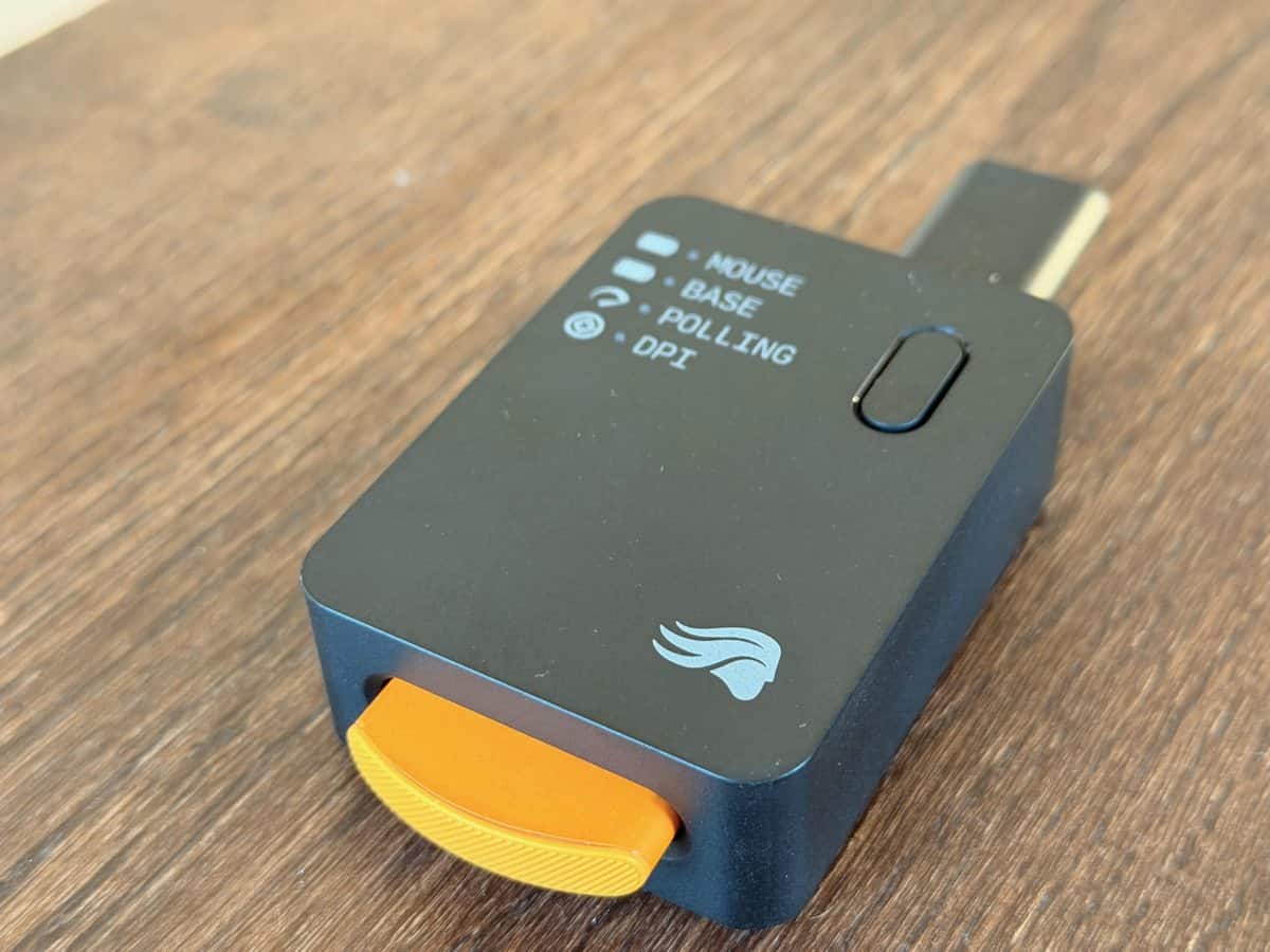 Du skifter batteriet ved at klikke ind på batteriet, som sidder bagerst på musen. Derved skubbes batteriet ud og du kan sætte det andet i. Batteriet der ikke er i brug oplades i den medfølgende dock, der udover oplysninger om batteriniveau også styrer polling og DPI, ligesom du kan sætte den medfølgende 2.4 Ghz dongle i docken. D3 kan i øvrigt også tilsluttes via bluetooth.