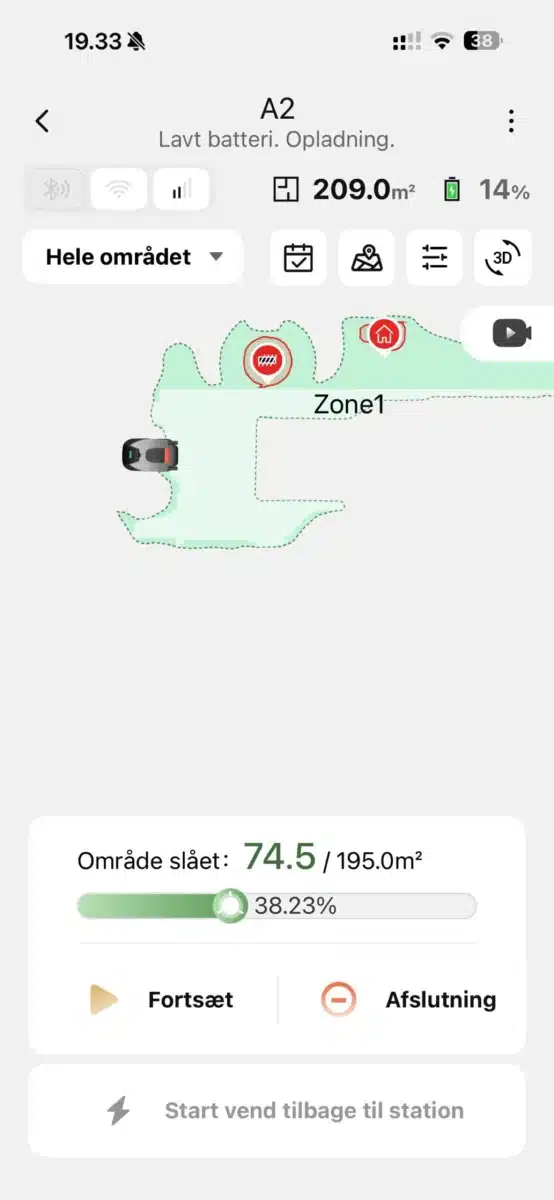 Efter installation skal man kortlægge sin have / haver, for Dreame A2 kan faktisk godt køre i mere end én have, hvis man f.eks. vil dele den med naboen, og der er mulighed for at køre mellem haverne.