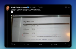 Et billede af Googles interne milepælsplan cirkulerer på sociale medier og viser angiveligt en tidslinje for lanceringen af Gemini 3.0. Ifølge billedet er en offentliggørelse planlagt til den 22. oktober.
